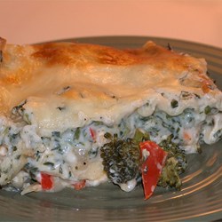 A rich, cheesy lasagna loaded with vegetables. You could also omit all veggies except broccoli for a broccoli lasagna.